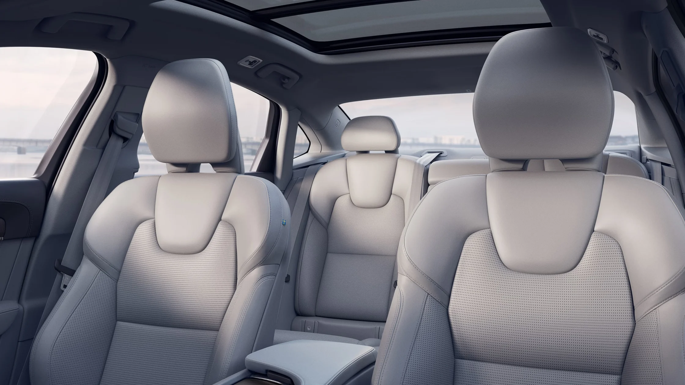 The 2025 Volvo S90 interior reflects a focus on comfort and quality materials, with multiple upholstery options including perforated Nappa leather and a wool blend tailored for different trim levels. The seating layout accommodates five passengers with spacious legroom, supported by power-operated front seats equipped with driver memory and adjustable lumbar support. Available upgrades include ventilated and massaging seats for front occupants and ventilated rear seats, designed to increase comfort on longer drives.