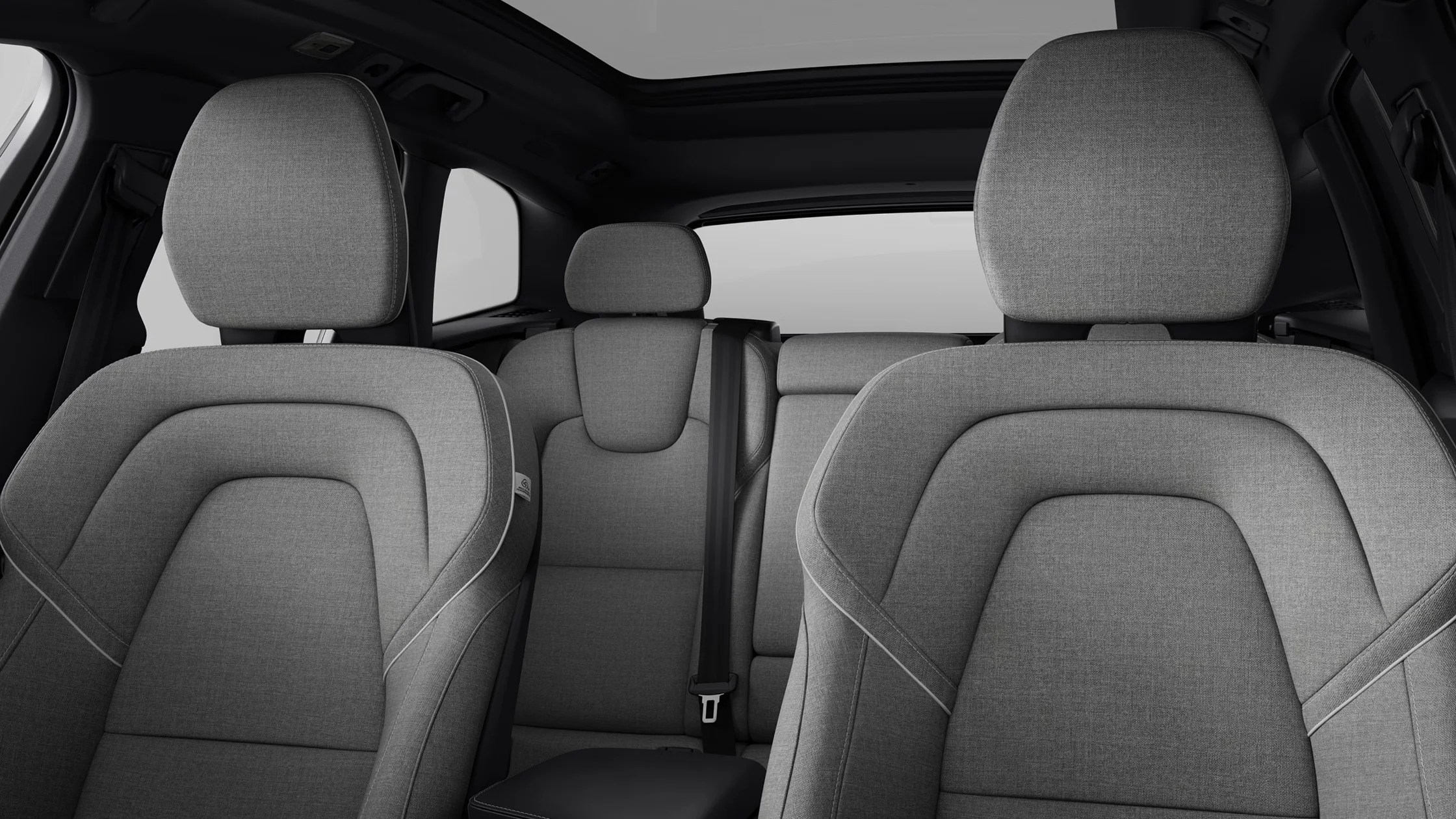 Inside the 2025 Volvo XC60 Plug-In Hybrid, the focus is on functional design and operational efficiency. The cabin features an optional Tailored Wool Blend upholstery, offering an animal-free material alternative with moisture-regulating properties. All five seats are ergonomically shaped and include multiple adjustment settings, with front-row memory functions available.